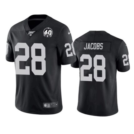 Youth Oakland Raiders #28 Josh Jacobs Black 2019 100th Season With 60 Patch Vapor Untouchable Limited Stitched NFL Jersey