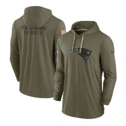 Men’s New England Patriots 2022 Olive Salute to Service Tonal Pullover Hoodie