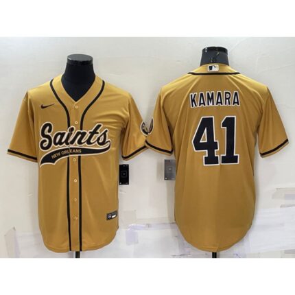 Men’s New Orleans Saints #41 Alvin Kamara Gold Cool Base Stitched Baseball Jersey