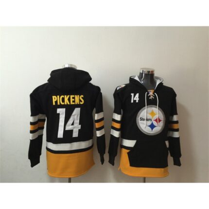Men’s Pittsburgh Steelers #14 George Pickens Black Ageless Must-Have Lace-Up Pullover Hoodie