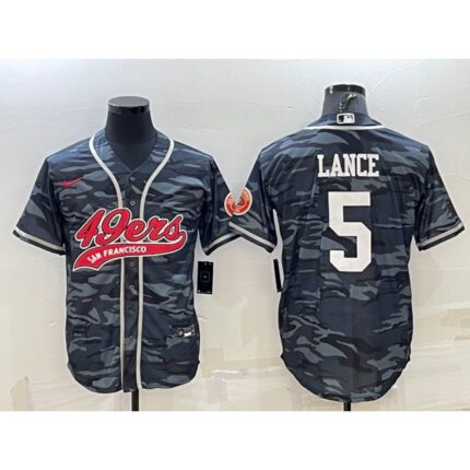 Men’s San Francisco 49ers #5 Trey Lance Grey Camo With Patch Cool Base Stitched Baseball Jersey