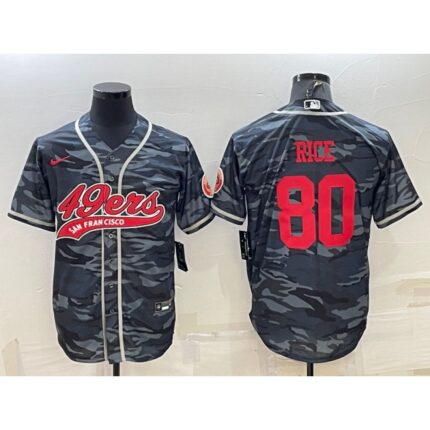 Men’s San Francisco 49ers #80 Jerry Rice Grey Camo With Patch Cool Base Stitched Baseball Jersey