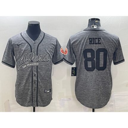 Men’s San Francisco 49ers #80 Jerry Rice Grey With Patch Cool Base Stitched Baseball Jersey