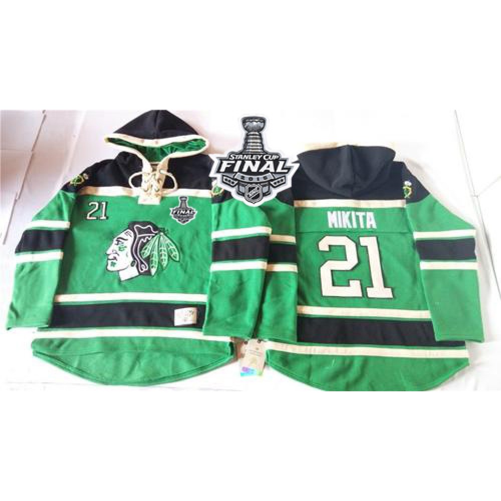 Blackhawks #21 Stan Mikita Green St. Patrick's Day McNary Lace Hoodie 2015 Stanley Cup Stitched NHL Jersey quantity