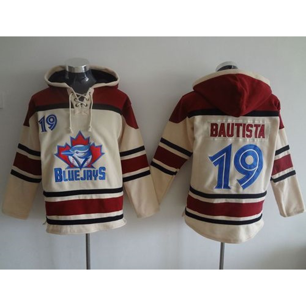 Blue Jays #19 Jose Bautista Cream Sawyer Hooded Sweatshirt MLB Hoodie quantity