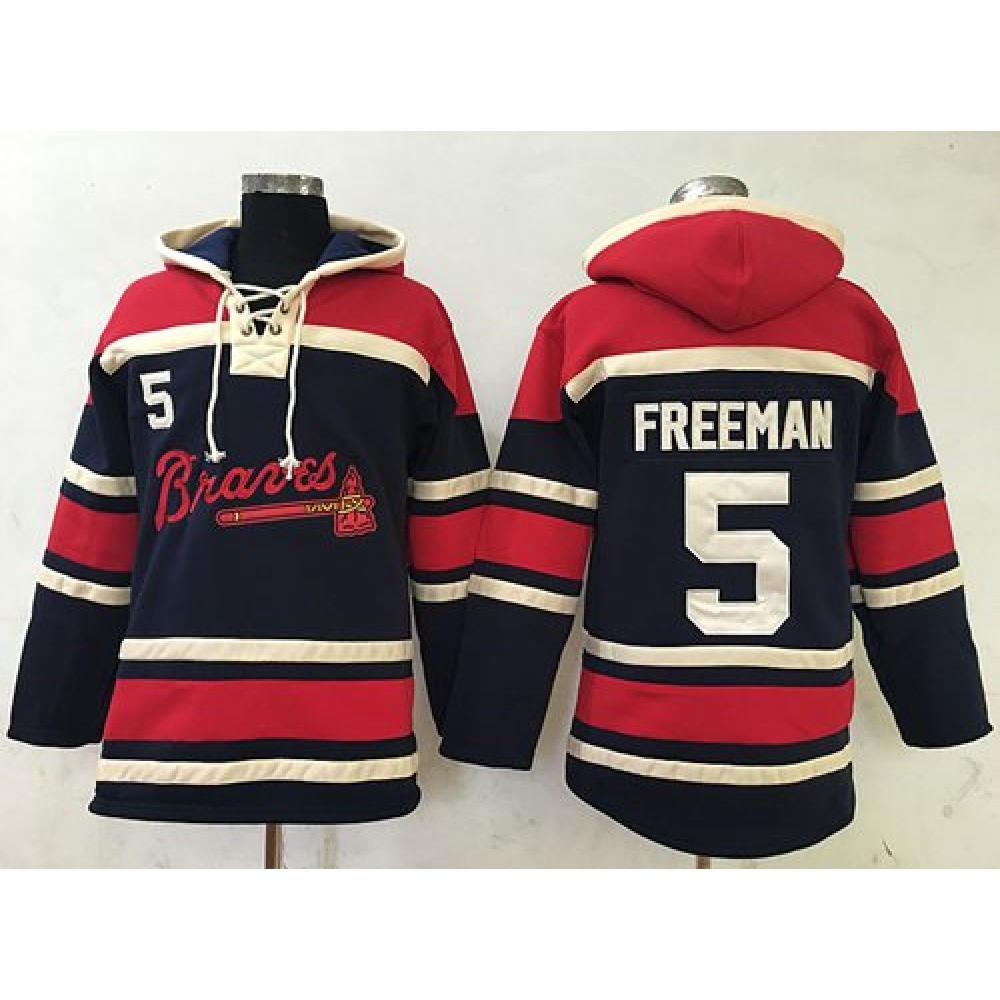 Braves #5 Freddie Freeman Navy Blue Sawyer Hooded Sweatshirt MLB Hoodie quantity