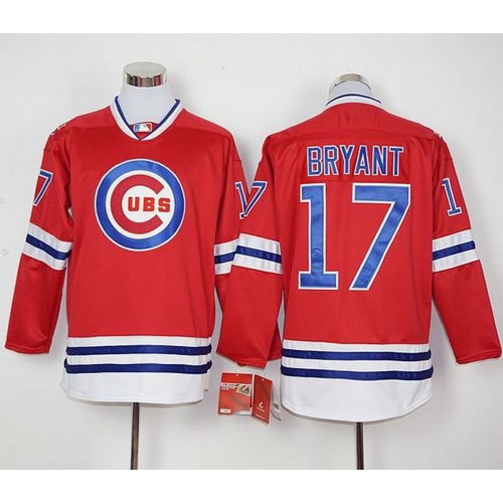 Home MLB Jerseys Chicago Cubs Cubs #17 Kris Bryant Red Long Sleeve Stitched MLB Jersey