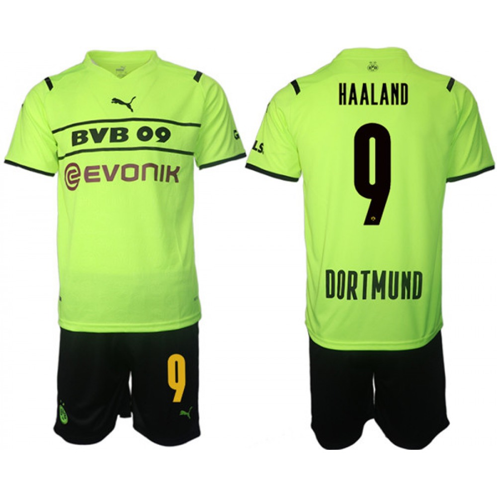 Men's Borussia Dortmund #9 Erling Haaland 2021/22 Green PUMA Cup Soccer Jersey Suit quantity