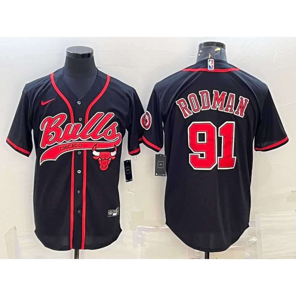 Men's Chicago Bulls #91 Dennis Rodman Black Cool Base Stitched Baseball Jersey quantity