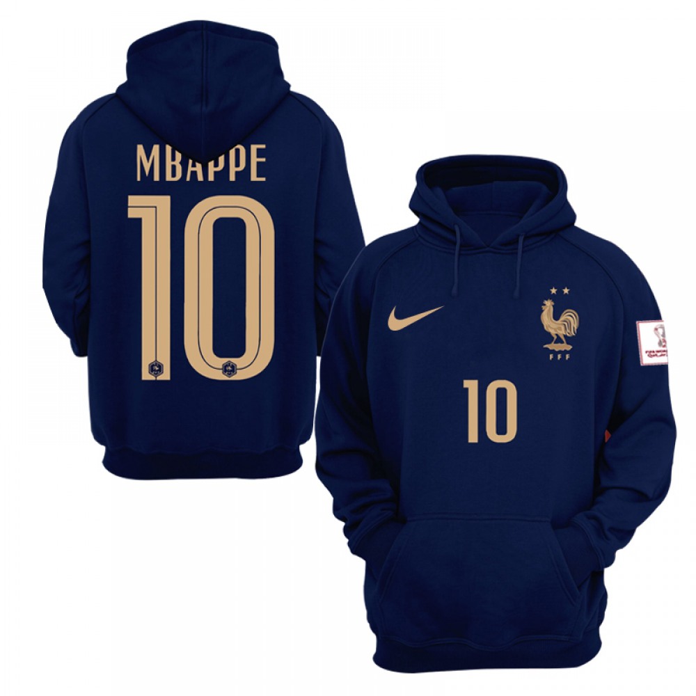 Men's France #10 Mbappe FIFA World Cup Soccer Hoodie Navy 002