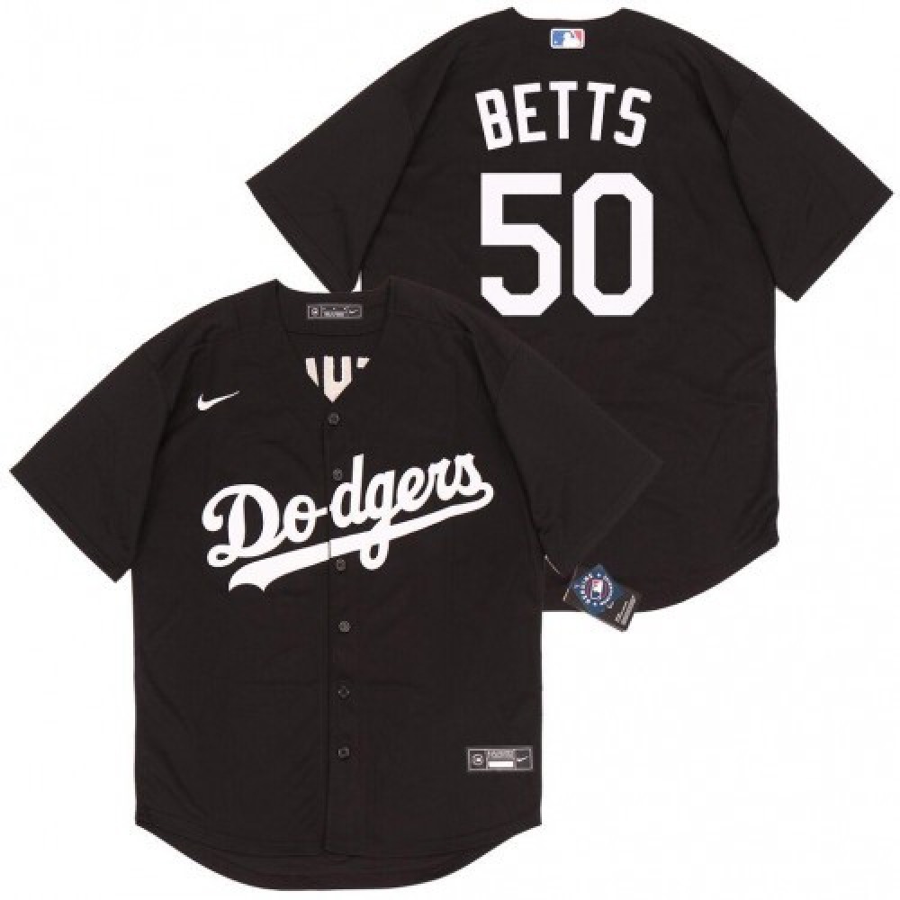 Men's Los Angeles Dodgers #50 Mookie Betts Black Gold 2020 World Series Stitched Jersey USD$ 49.99