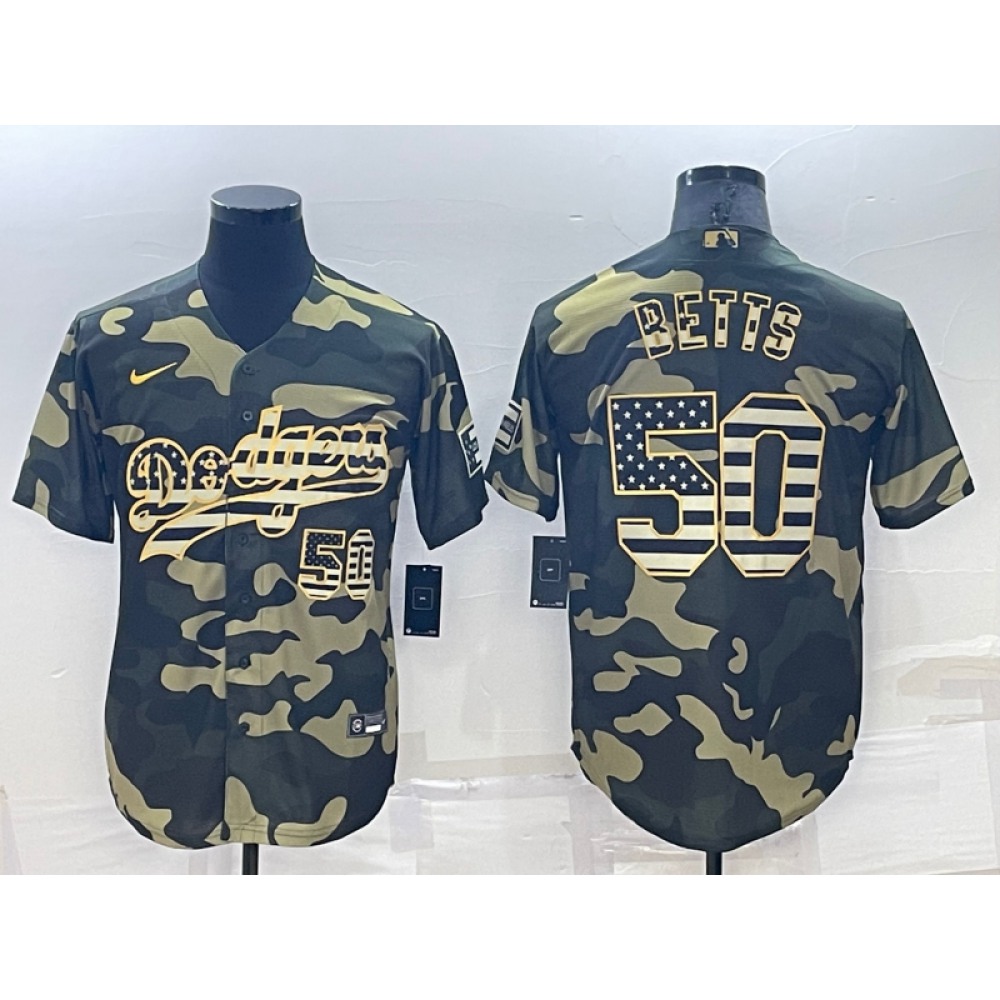 Men’s Los Angeles Dodgers #50 Mookie Betts Olive Cool Base Stitched Baseball Jersey