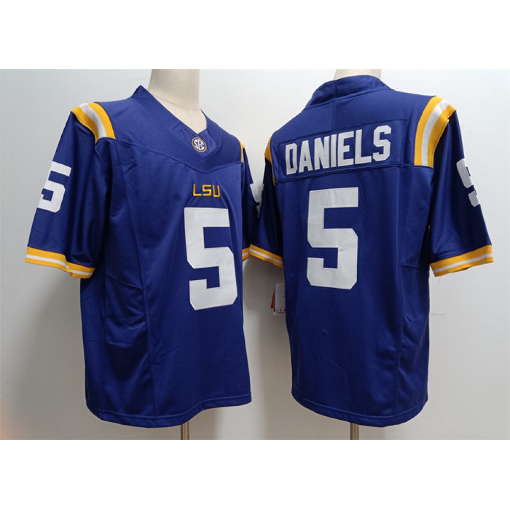 Men’s LSU Tigers #5 Jayden Daniels Blue Stitched Jersey