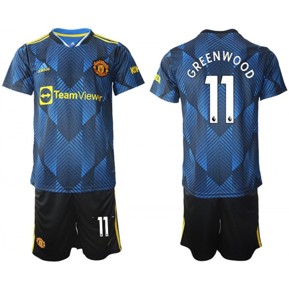 Men's Manchester United #11 Mason Greenwood Blue Away Soccer Jersey Suit quantity