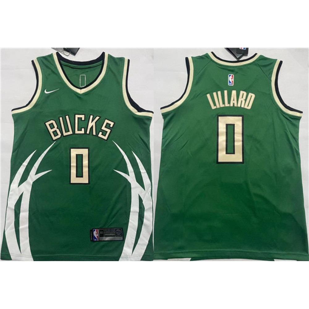 Men’s Milwaukee Bucks #0 Damian Lillard Green Icon Edition Stitched Basketball Jersey