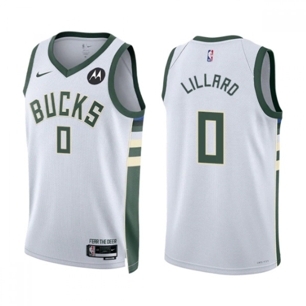 Men’s Milwaukee Bucks #0 Damian Lillard White Association Edition Stitched Basketball Jersey