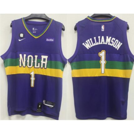 Men’s New Orleans Pelicans #1 Zion Williamson Purple With NO.6 Patch Stitched Basketball Jersey