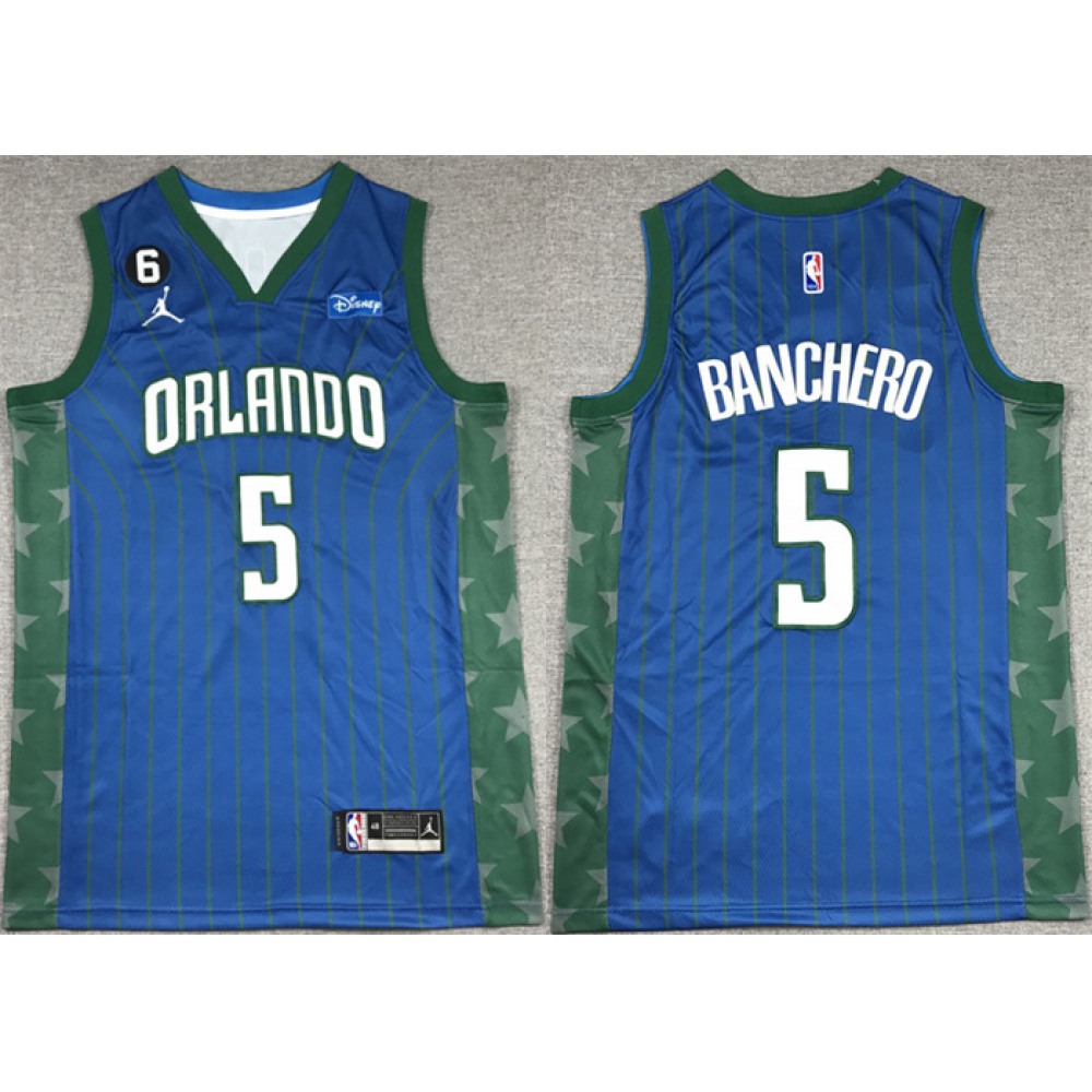 Men's Orlando Magic #5 Paolo Banchero Blue With No.6 Patch Icon Edition Stitched Swingman Jersey USD$ 49.99