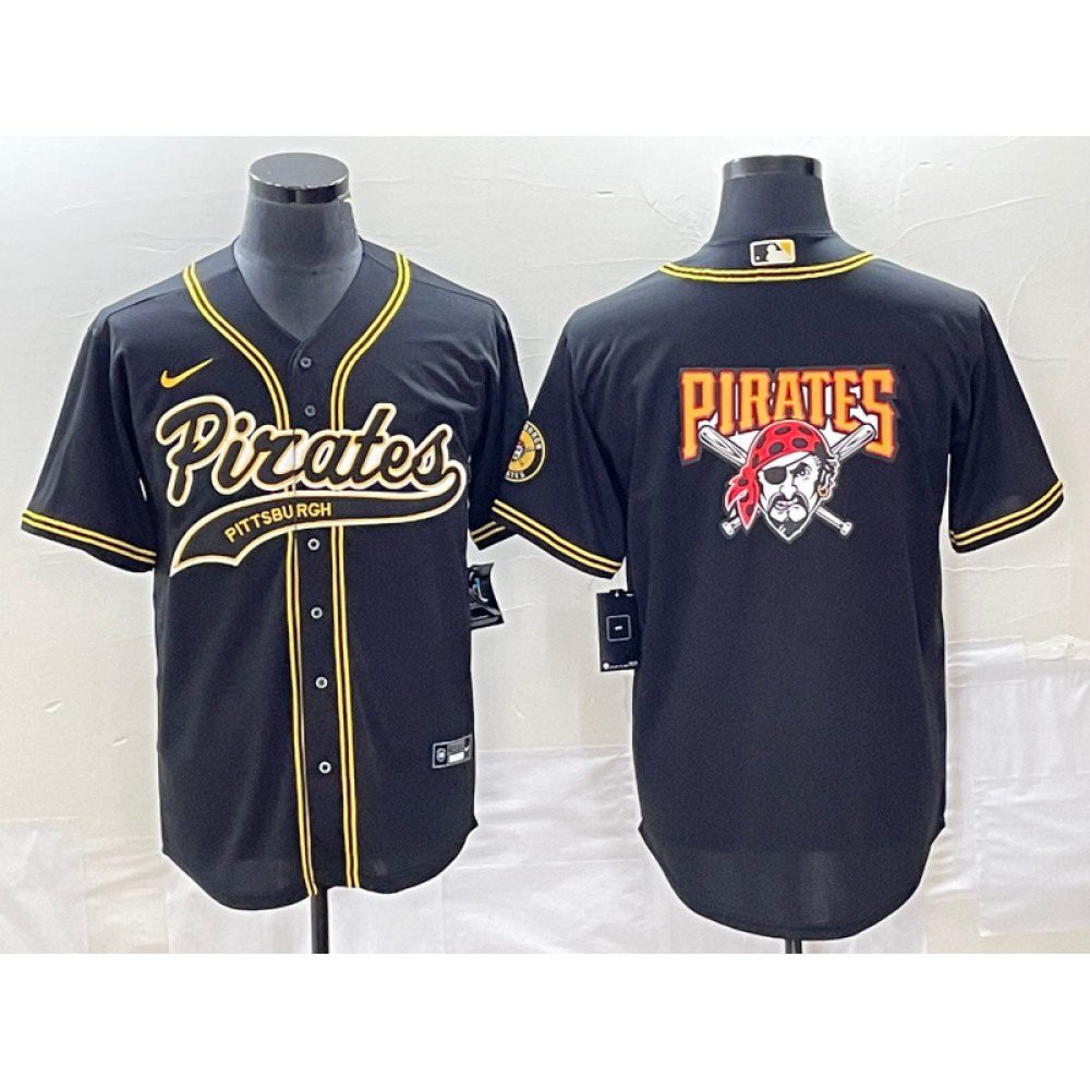 Men's Pittsburgh Pirates Black Team Big Logo Cool Base Stitched Baseball Jersey