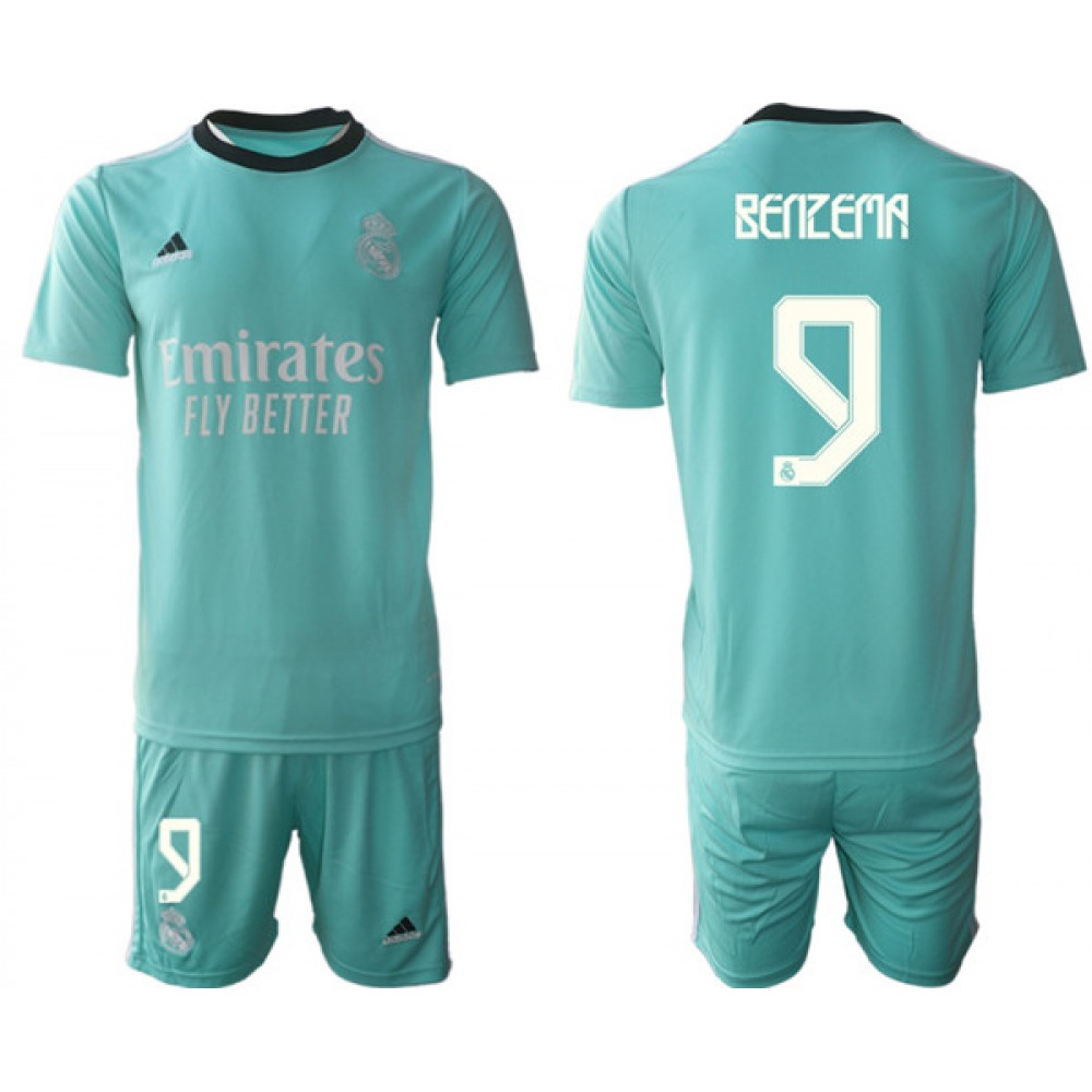 Men's Real Madrid #9 Karim Benzema 2021/22 Teal Away Soccer Jersey Suit quantity