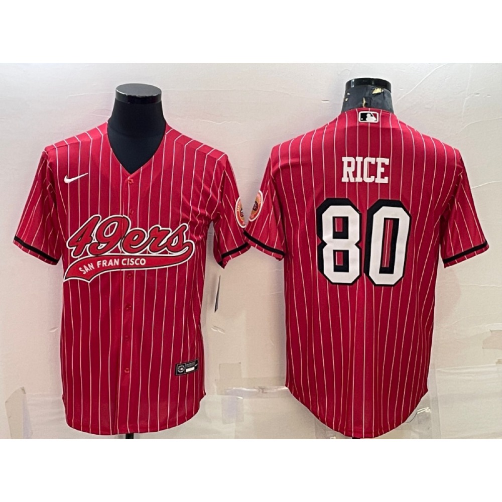 Men’s San Francisco 49ers #80 Jerry Rice Red With Patch Cool Base Stitched Baseball Jersey
