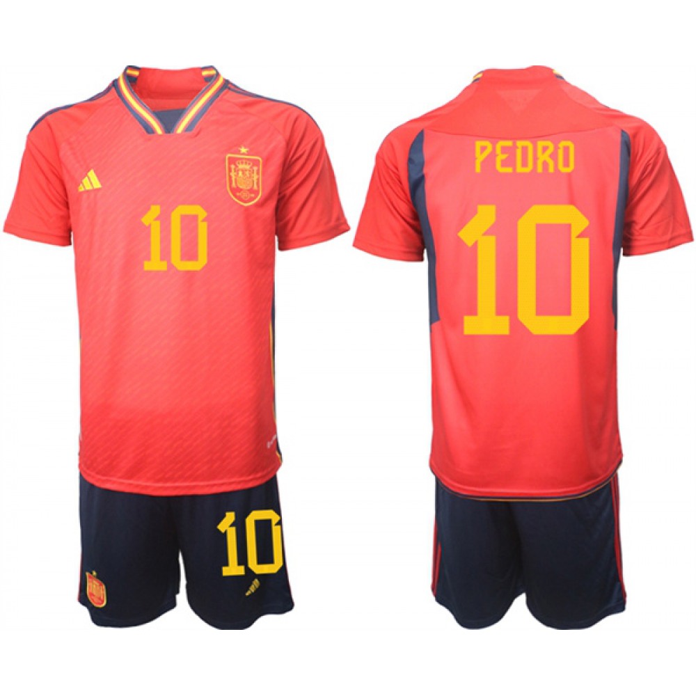 Men’s Spain #10 Pedro Red Home Soccer Jersey Suit