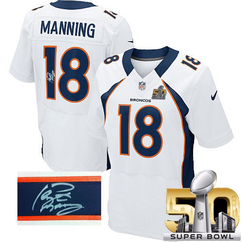 Nike Broncos #18 Peyton Manning White Super Bowl 50 Men’s Stitched NFL Elite Autographed Jersey