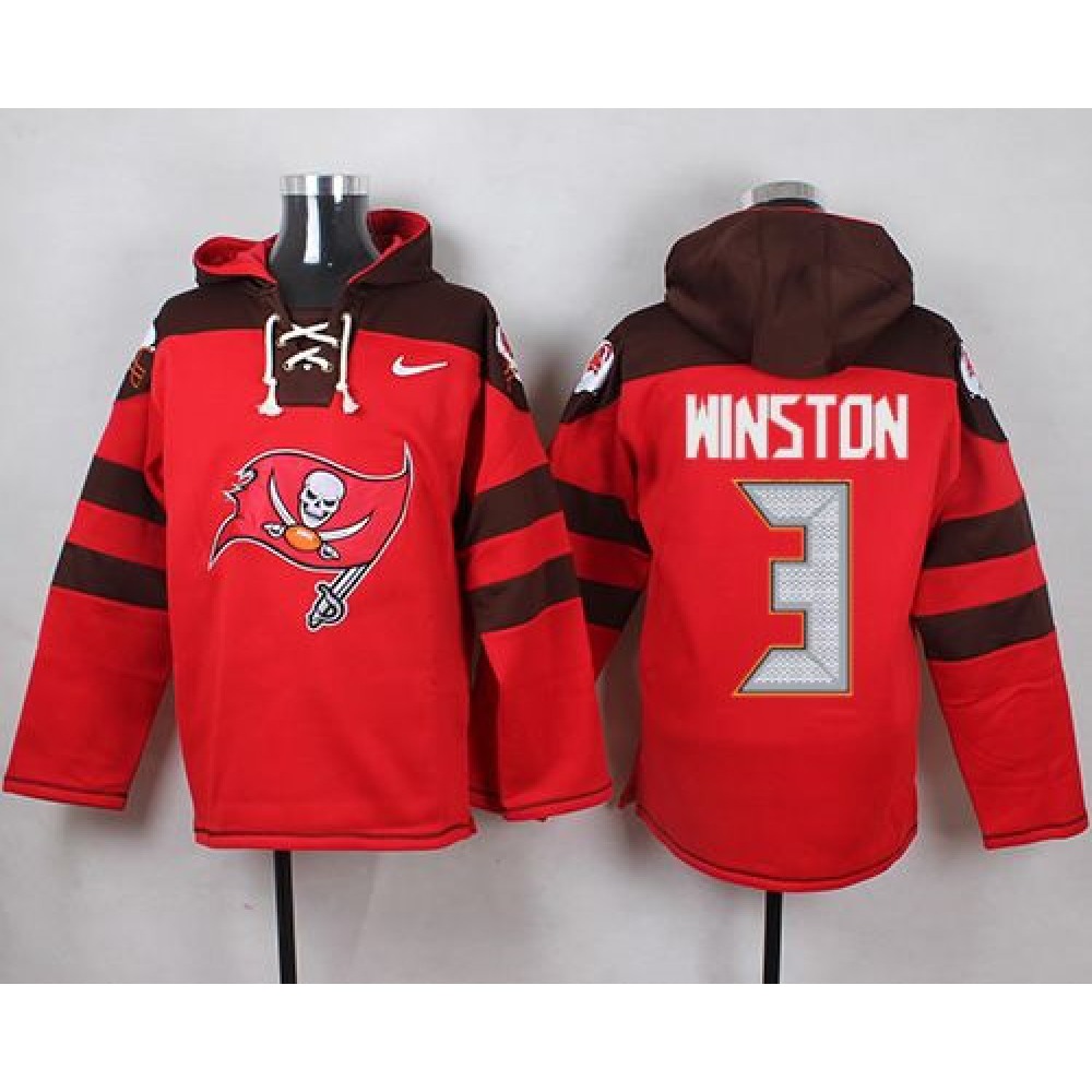 Nike Buccaneers #3 Jameis Winston Red Player Pullover NFL Hoodie quantity