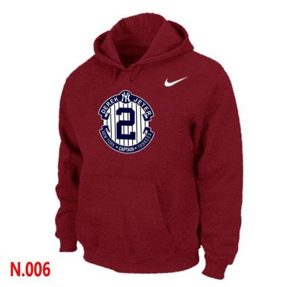 Nike New York Yankees #2 Derek Jeter Official Final Season Commemorative Logo Pullover Hoodie Red